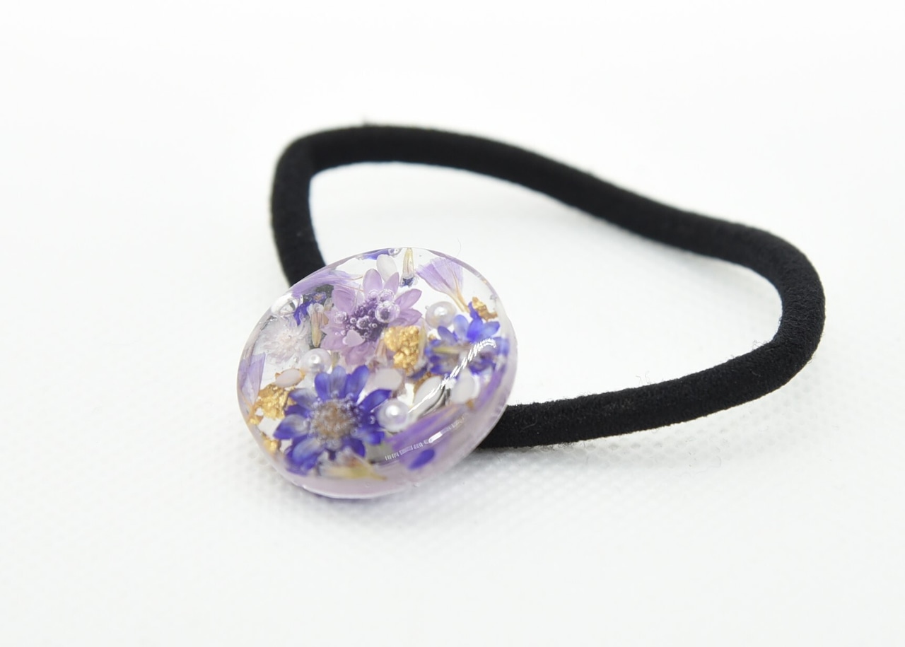 ブルー系フラワー ヘアゴム 丸型 2.5㎝