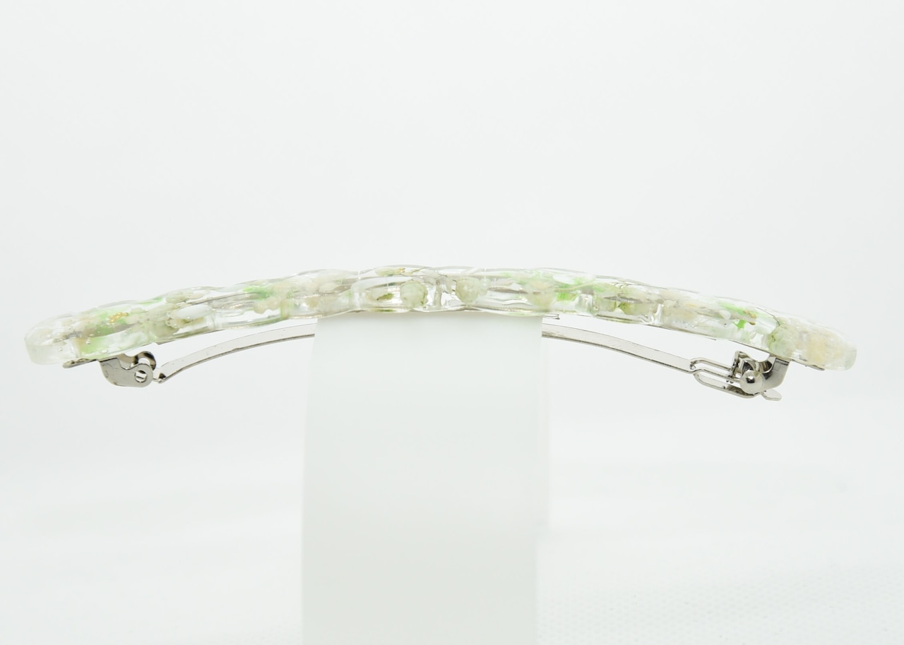 青りんごのような薄く柔らかい緑と白色が、小さなパーツでスッキリと広がっていて透明感と上品さが魅力です。